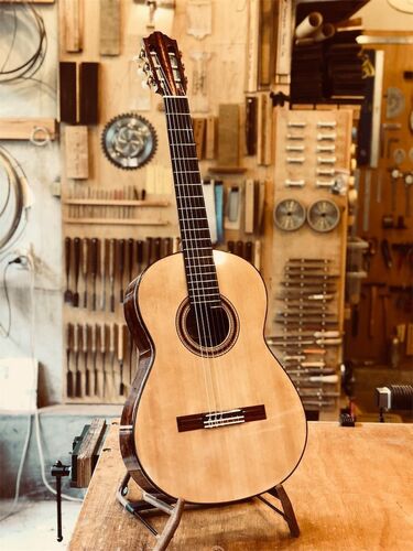 Ryosuke Kobayashi Guitars 2018 Classical Spruce/Granadillo トップ:スプルース サイドバック:グラナディロ フィンガーボード:エボニー ブリッジ:グラナディロ ネック:マホガニー フィニッシュ:全面セラック(フレンチポリッシュ) 糸巻き:Gotoh35G510
