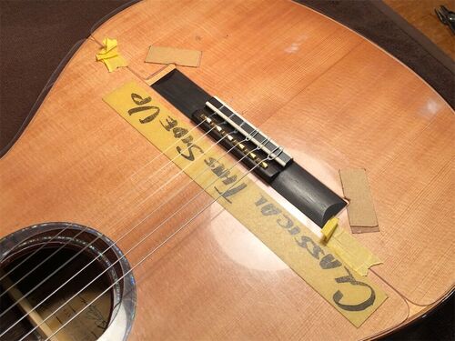 現在製作中のギターは、 Classical RF 650mm Classical RF 645mm Classical RF 640mm Nylon Crossover Electric RF Lefty です。以下、作業の様子です。 ロゼッタを作り、トップ板に溝を掘り、接着の準備が整いました。 接着後、面出しをします。 素材はメイ…